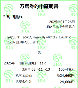 ニューイヤーステークス的中!相方が。。まあまあ人気サイドですが3連単で今年初の万馬券♪