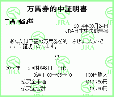 波乱と思いきやハープとシップのワン・ツーで、3着もG1馬のホエールキャプチャと来まして3連単は万馬券。家内がなぜか当ててました(;>_<;)