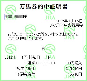 同じ日の札幌メインしらかばステークスを家内がゲット!