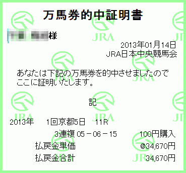 以上、家内の万馬券2枚でした。。