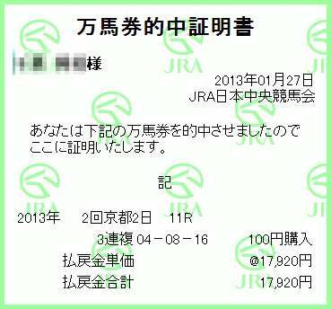 以上、またしても家内の万馬券でした。。。