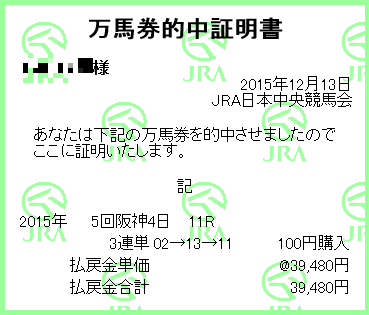 先週に引き続き家内がなぜか的中。家内はヨコノリ好きで、同騎手はブービー惨敗だったのになぜ?外国人騎手と岩田騎手を買ってればよいから?