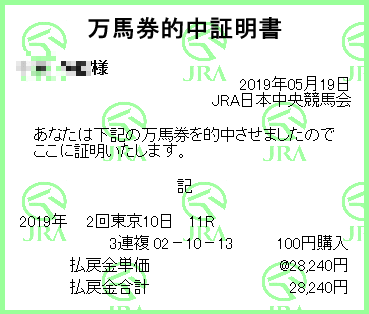 オークス的中!家内が。なぜ二馬の買い目にはないのだろうか。