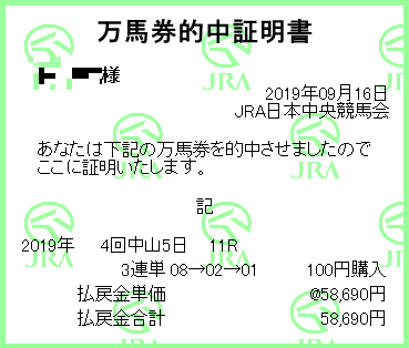 セントライト記念的中!家内が。。なんか調子いいな、家内が。。