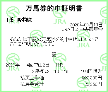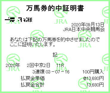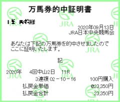 万馬券的中!自分が。悲しいかな100円買い。