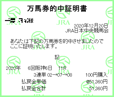その後コントレイルは無敗で3冠馬まで登りつめ、サリオスは同馬の後塵を拝し続けていたのであの判断は正しかったわけですが、たまには「朝日杯FS < ホープフルS」の構図を覆して欲しいものです。