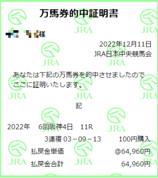 阪神JF制覇!二馬の予想にはありませんでしたが、9を中心に内の馬と外の馬という組み合わせを買ってました! 1着:9番リバティアイランド…1番人気+ボウシと勝負服の該当馬、エッヘン(1番人気) 2着:3番シンリョクカ…1戦1勝馬って昔から来るんですよね、世相で予想の馬ですし(12番人気) 3着:13番ドゥアイズ…札幌2歳Sからの馬も走るんですよね(10番人気) |