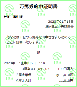 京成杯を的中!9頭立てながら殿人気馬が2着に入り、今年初の万馬券!