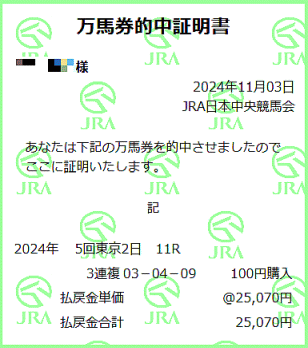 アルゼンチン共和国杯的中!相方が。。白毛馬で8歳馬のハヤヤッコをよく軸にできたものです
