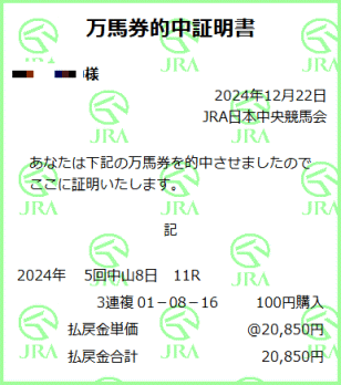 有馬記念的中!相方が・・なぜ、二馬の予想にはないの???