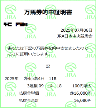 北九州記念的中!相方が。。18頭立てのローカルハンデ重賞なんて、と思いきや当たったのです!
