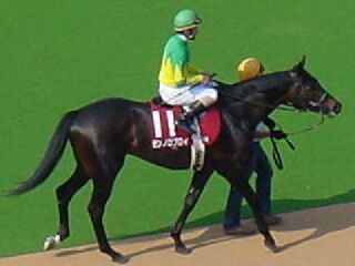 今日のゼンノロブロイは帽子と勝負服の色がピッタリ。こいつから穴を狙ったけど・・・。 前哨戦は難なくクリアしたロブロイ、本番でも人気になりそう。