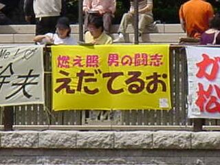 2位は江田輝男騎手の応援幕。最近G1じゃちっとも目立たない存在なので、本当に燃えてほしいものです。