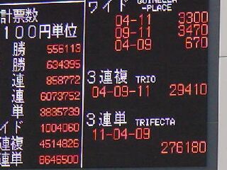 そしたらなんと、3連複4-9-11が的中!配当は29,410円つきました。(100円が29,410円に!)
