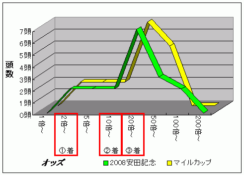 では、NHKマイルカップの単勝オッズを調べてみましょう。 一番似ていたのは2008年の安田記念、ちょうど同じコースの同じ距離のG1です。