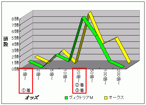 したがってオークスはこうなります。(土曜前売締切時点オッズより)