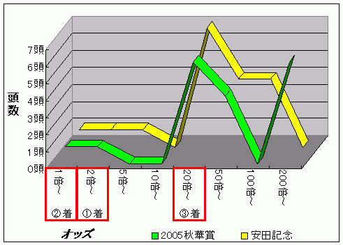 と言う訳で安田記念に近かったオッズは2005年秋華賞でした、単勝200倍台が6頭もいましたが