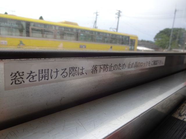 • え、窓を開ける時の注意書き?そういえば窓を上方向に開ける車両って最近では珍しいのかも
