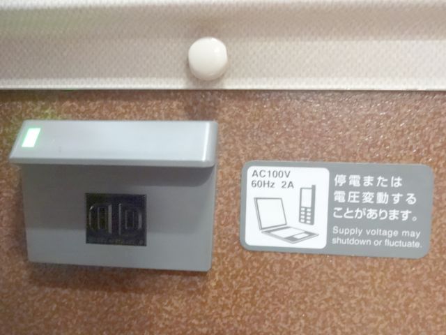 ↑北陸新幹線は1人に1個コンセントがつきました!最高速度が260km/hと控えめな分、車内設備に電気を供給する余裕ができたそうです。車内も落ち着いた雰囲気です。(画像クリックで拡大&矢印キーで3枚スライド)