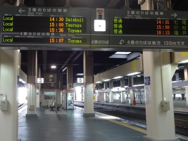 - あれ、4番線がない、縁起担ぎ?と思いきや東金沢方面に切り欠きホームの七尾線用4番線を発見