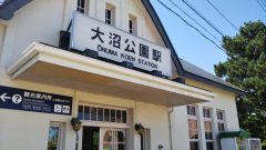 まず大沼公園駅からスタート、この区間は単線のようで1面1線のホームです(画像クリックで拡大&3枚スライド)
