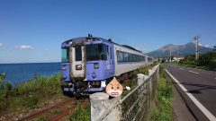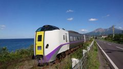 森駅から札幌方面へ進み駒ケ岳と海がバックのスポットで、スーパー北斗と臨時特急ニセコ号を撮影!非電化区間&複線って本州ではあまり見られないです(画像クリックで拡大&4枚スライド)