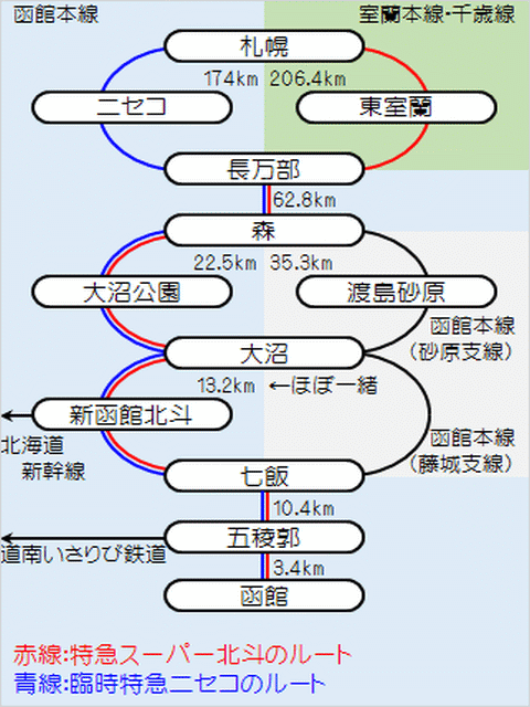 | ニセコ | 17:13 | 2:16 | 東室蘭 | 16:15 | 1:34 | |