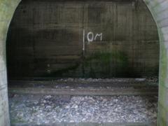 [1]↑平岡駅を鶯巣方面(豊橋方面)に418号線を走ると、まず落石よけのトンネル跡がありました。一番左の「窓」には道路から上がれる階段がありました。