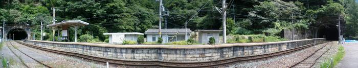 [5]↑鶯巣からさらに豊橋方面へ4駅目の大嵐(おおぞれ)駅にて。両端がトンネルとなっています。(3500x670ピクセル!)