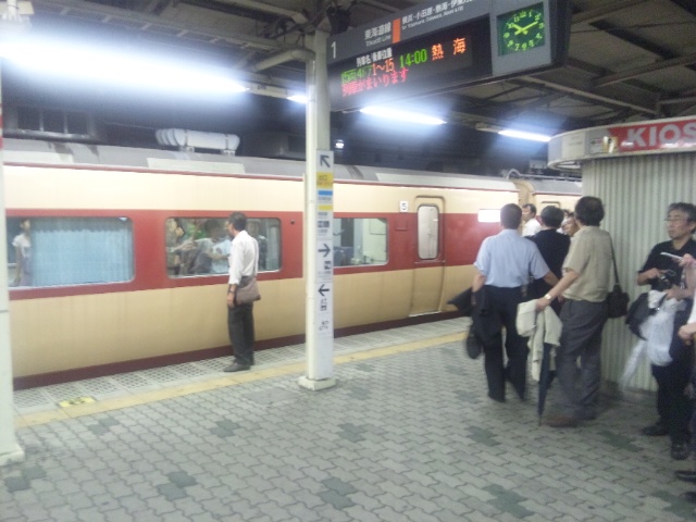 東海道線のホームでは修学旅行列車が止まってた。