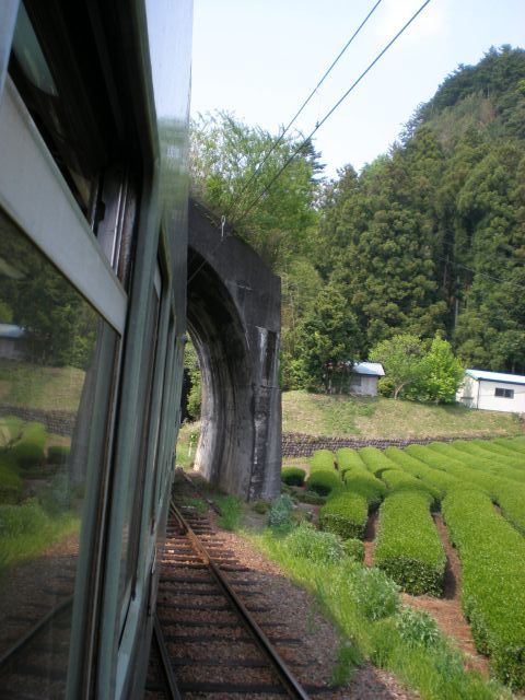 [3]↑地名(じな)駅を過ぎると日本一短いトンネルが。昔この上をロープウェイが通っていて落下物を避けるために作られたそうです。
