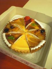 3連休に備えケーキを買いだめすべく、限定のバラエティセット(¥1,575)を購入。 各種タルトの寄せ集めです。イチゴのタルトから時計回りにプリンタルト、ミックスフルーツタルト、リンゴのタルト、チーズタルト、再びプリンタルト、ミックスフルーツタルト、リンゴのタルトです。 いろんな味が楽しめました♪
