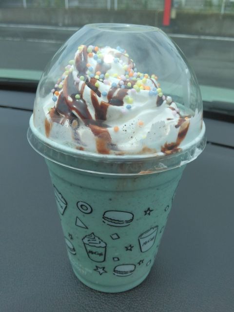 マックのクーポン利用で490円⇒470円、チョコミントって好き嫌いが分かれるようですが私は大好きです♪クルマのダッシュボードに置いて撮ったのですが、おっと車体の色と似てるかも🤣